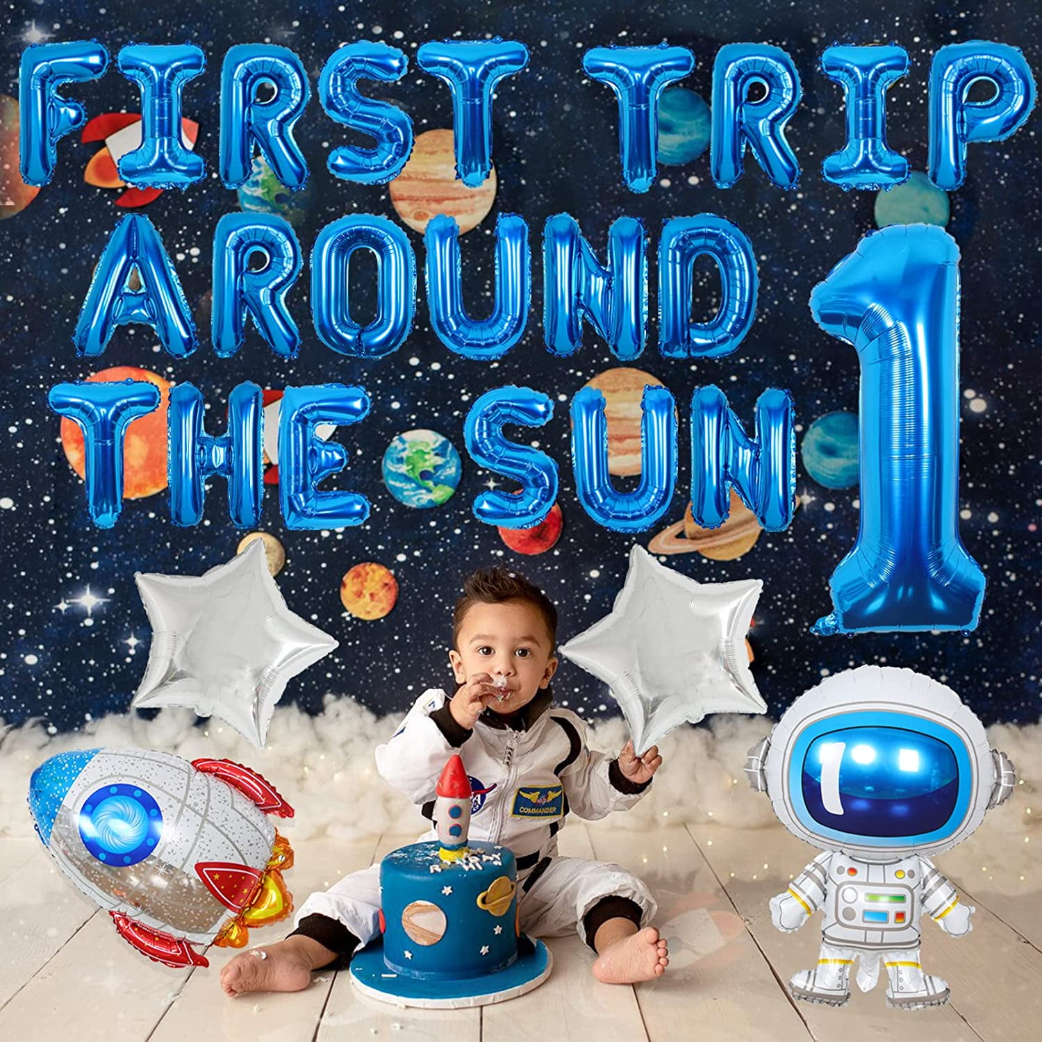First Trip Around The Sun Outer Space 1st Birthday Party Decorations Birthday Astronaut Rocket Balloons Blue Silver For Boys First Birthday Party Supplies Walmart Com